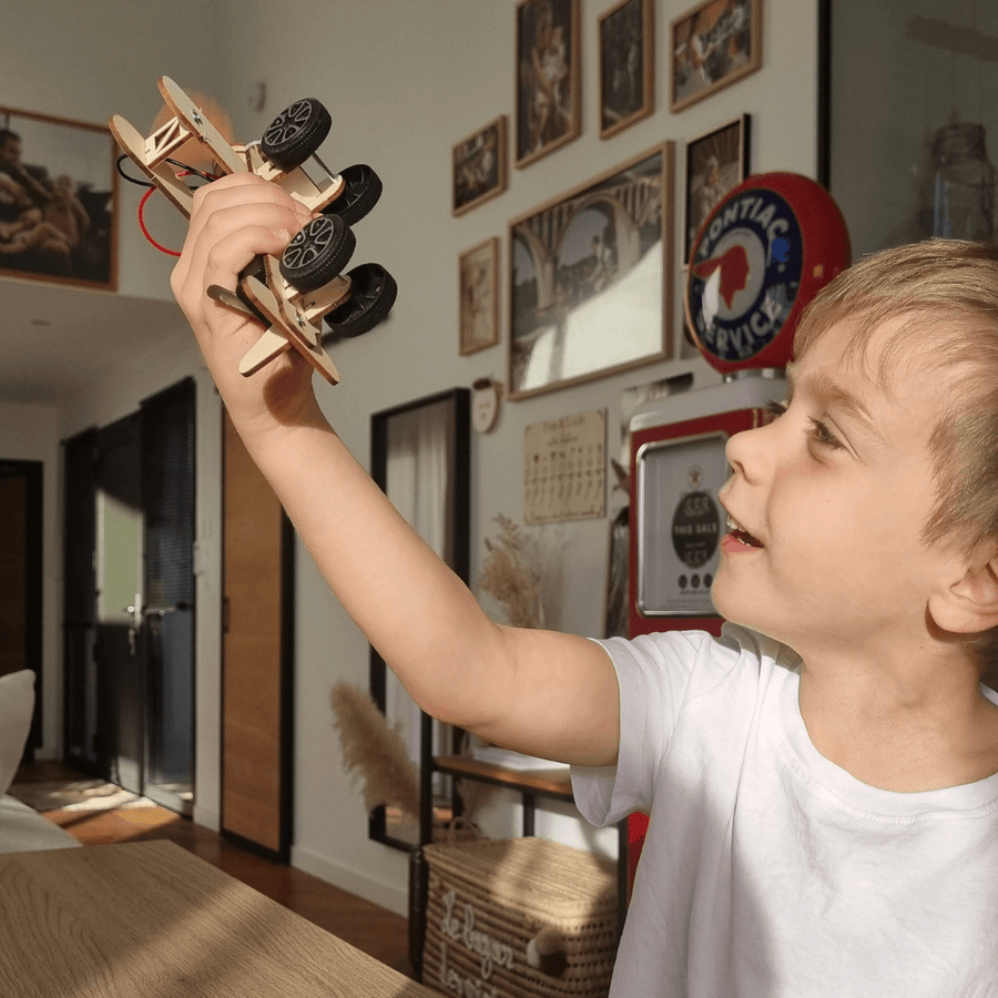 Chez ConstruiKids, nous créons des maquettes en bois à assembler soi-même, pour aider les enfants à se développer, à comprendre, à se dépasser, et à aller au bout de ce qu'ils entreprennent.
